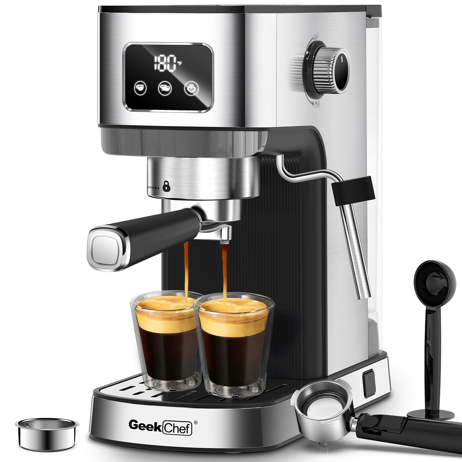 Geek Chef Espresso Machine, Cappuccino & Latte Machine with ESE POD Filter & Milk Frother Steam Wand, Accurate Temperature & Time Control Geek Chef Espresso Machine, Cappuccino & Latte Machine with ESE POD Filter & Milk Frother Steam Wand, Accurate Temperature & Time Control Geek Chef Espresso Machine, Cappuccino & Latte Machine with ESE POD Filter & Milk Frother Steam Wand, Accurate Temperature & Time Control