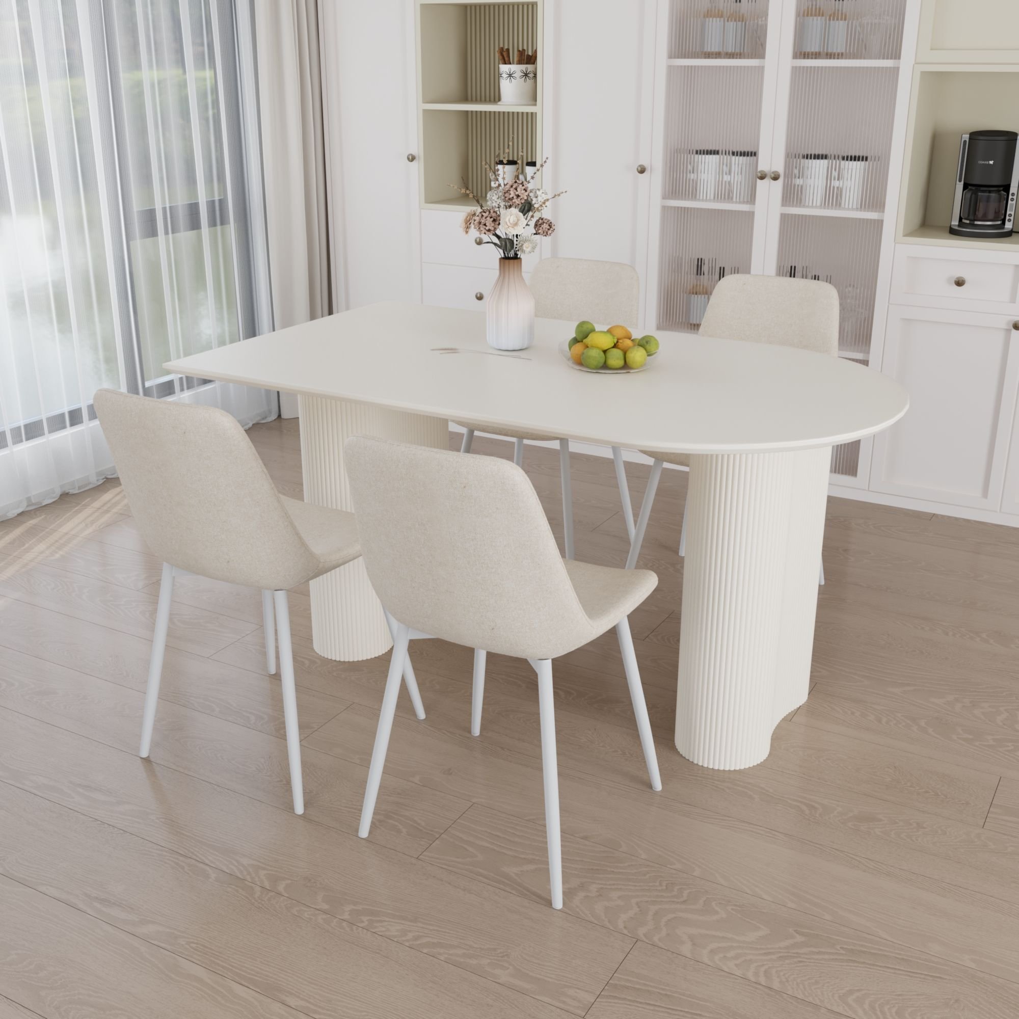 3.3.Cream finish coffee table: This table features a fashionable milky white finish, with a luxurious cream tabletop and thick, round legs carved with delicate patterns like waves, adding a touch of delicacy to any dining space.