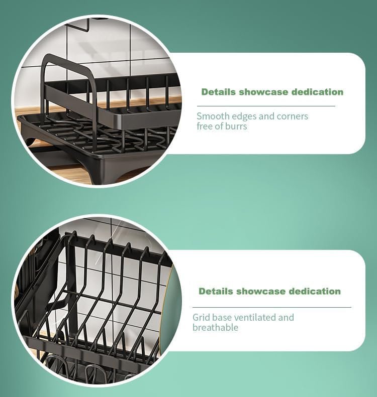 [MULTIPURPOSE DISH RACK]This multifunctional dish rack and drainboard set features multiple accessories, including 2 racks, a cutlery holder, 6 cup holder accessories, 1 drainage plate, and a cutting board holder, which can efficiently help you store diverse kitchenware. This stainless steel dish drying rack can meet all your needs for storing and drying kitchenware.[2-TIER DESIGN & LARGE CAPACITY]The large dish drying rack features a considerate 2-tier design, which enables you to store different types and sizes of kitchenware, such as wine glasses, bowls, dishes, knives, kitchen pots, and frying pans. Free up 30% of the kitchen counter space and create a neat and clean kitchen, with a jumbo size - 16.5(L)*12(W)*12(H) inches.Bottom rack legs with rubber covers ensure stability and prevent the tableware drying rack from sliding.[100% RUSTPROOF & SUPER STURDY]The Dish Drainer made of heavy duty carbon steel with nano-coating finish, the 2 tier dish rack will resist any damage that causes rust or discolor - durable and easy to clean which made to last, this kitchen dish rack is a solid metal drying rack choice for every household, it passed a 24-hour salt test.[AUTOMATIC DRAINAGE]This large dish drying rack features an automatic drainage system that consists of a drainboard and a water outlet at the bottom. It can drain excess water into the sink automatically. In addition, the rotatable water outlet is available in 3 directions, so you can adjust the water outlet according to the position of your sink.(⭐Warm Tips:The dish dryer rack has a rubber stopper, remove to drain water, insert to hold water, and quickly drain water for 30 seconds to keep the countertop dry.)[EASY TO INSTALL & CLEAN] No screws and tools are needed, you just assemble them together, it's super easy and my child can do it too! All the attchments are detachable, you can install them according to your need! Package includes 1 dish dryer rack with 6 cup holder accessories, 1 bowl rack, 1 cutting-board holder, 1 drainboard Set, 1 utensil and knife holder.You can simply wipe them with a damp cloth or rinse them under a running tap after use.(⭐Warm Tips:If it is unbalanced after installation, please press down from the second layer with your palm to stabilize.)LMingKun focuses on home products, Customer satisfaction s crucial to us. If you encounter any problems during use, or if our products does not meet your standards, please contact us solve. Please rest assured to purchase.