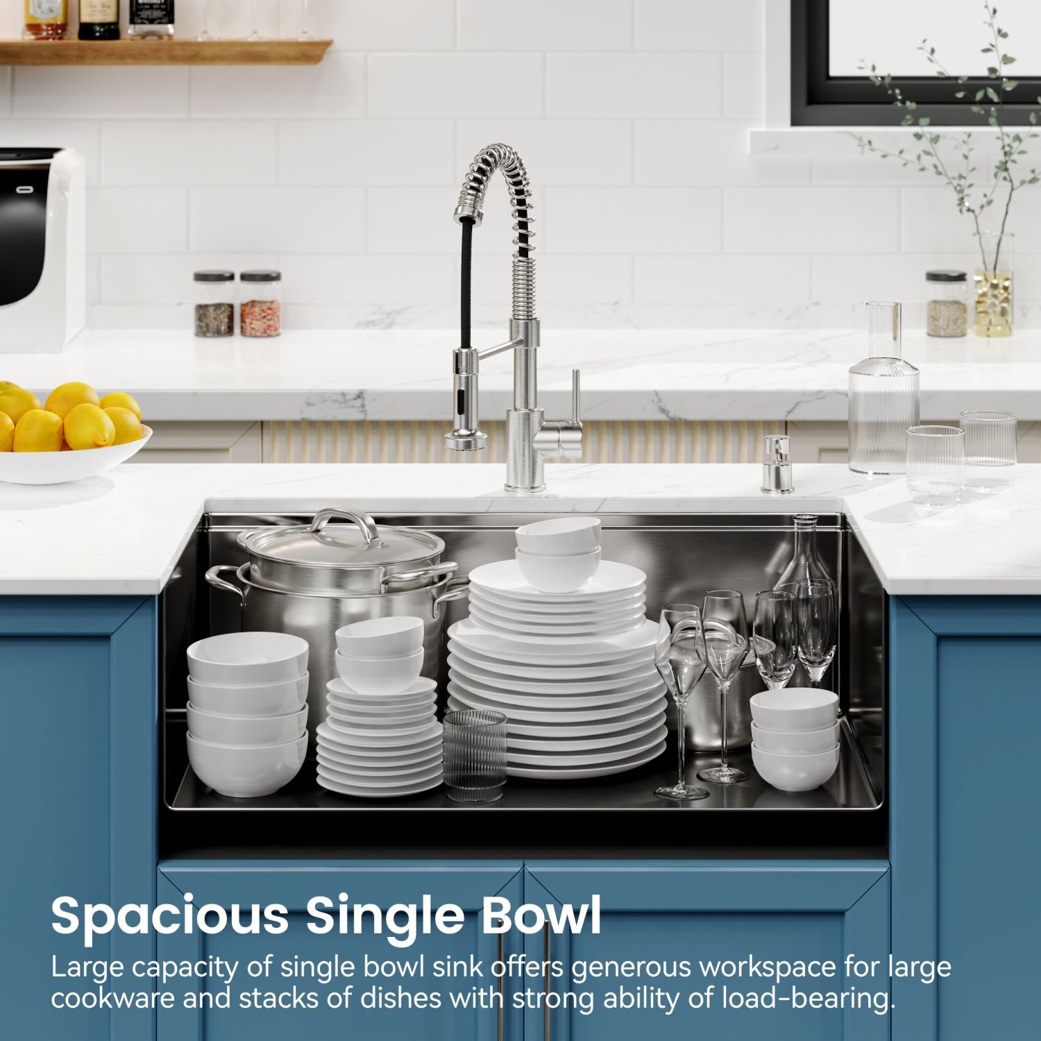 Single Bowl Design: Spacious design accommodates various items. Offer ample space for efficient dishwashing and food preparation, making kitchen tasks a breeze.