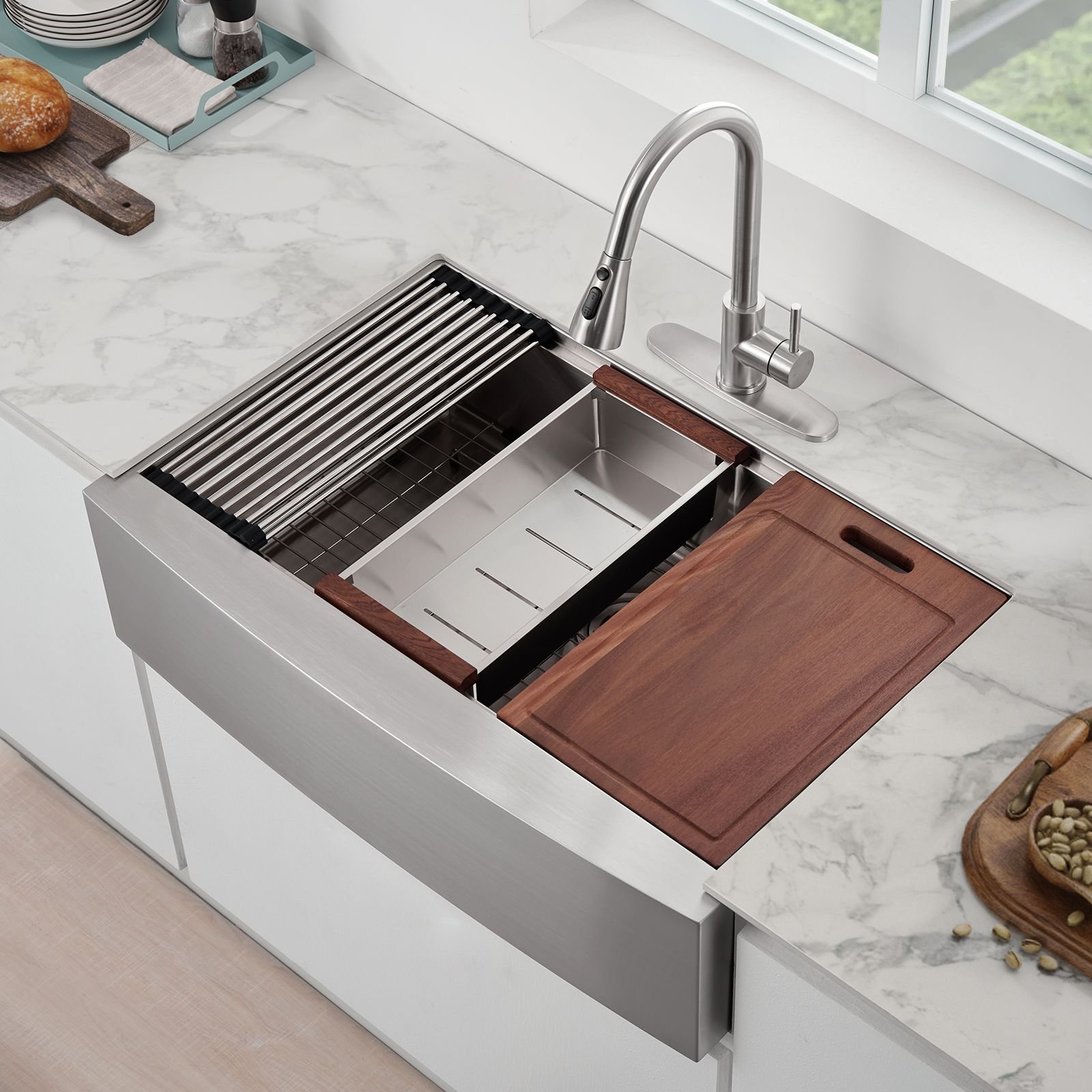 1.The Nano Surface:33 inch Farmhouse kitchen sink with Nano technology creates an protective coating that gives your sink high hardness, no worry about scratch, Your pets will never scratch the tub. giving your pet a lovely bath.